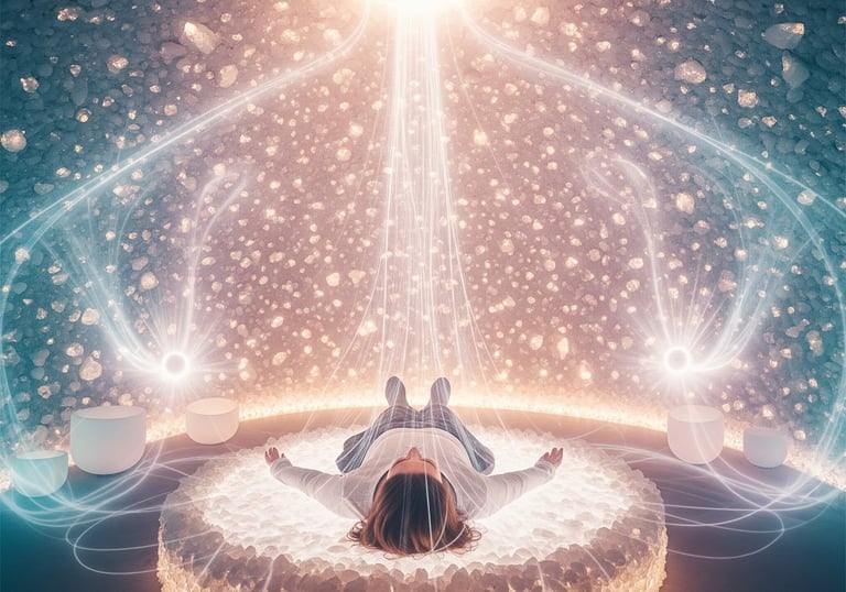 Hormonal fluctuations in estrogen and progesterone can lead to various challenges during menstruation and the transition of perimenopause. Yet, these phases also offer a profound opportunity for deeper Divine connection. This Crystal Chamber Healing Session is designed to support you through these changes, helping to balance estrogen and progesterone levels so you can align fully with your creative flow and higher self.